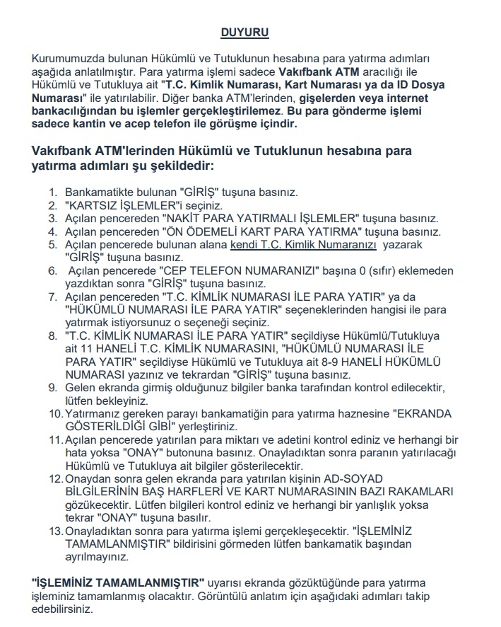 GÖRÜNTÜLÜ GÖRÜŞME VE E- KANTİN PARA YATIRMA İŞLEMİ